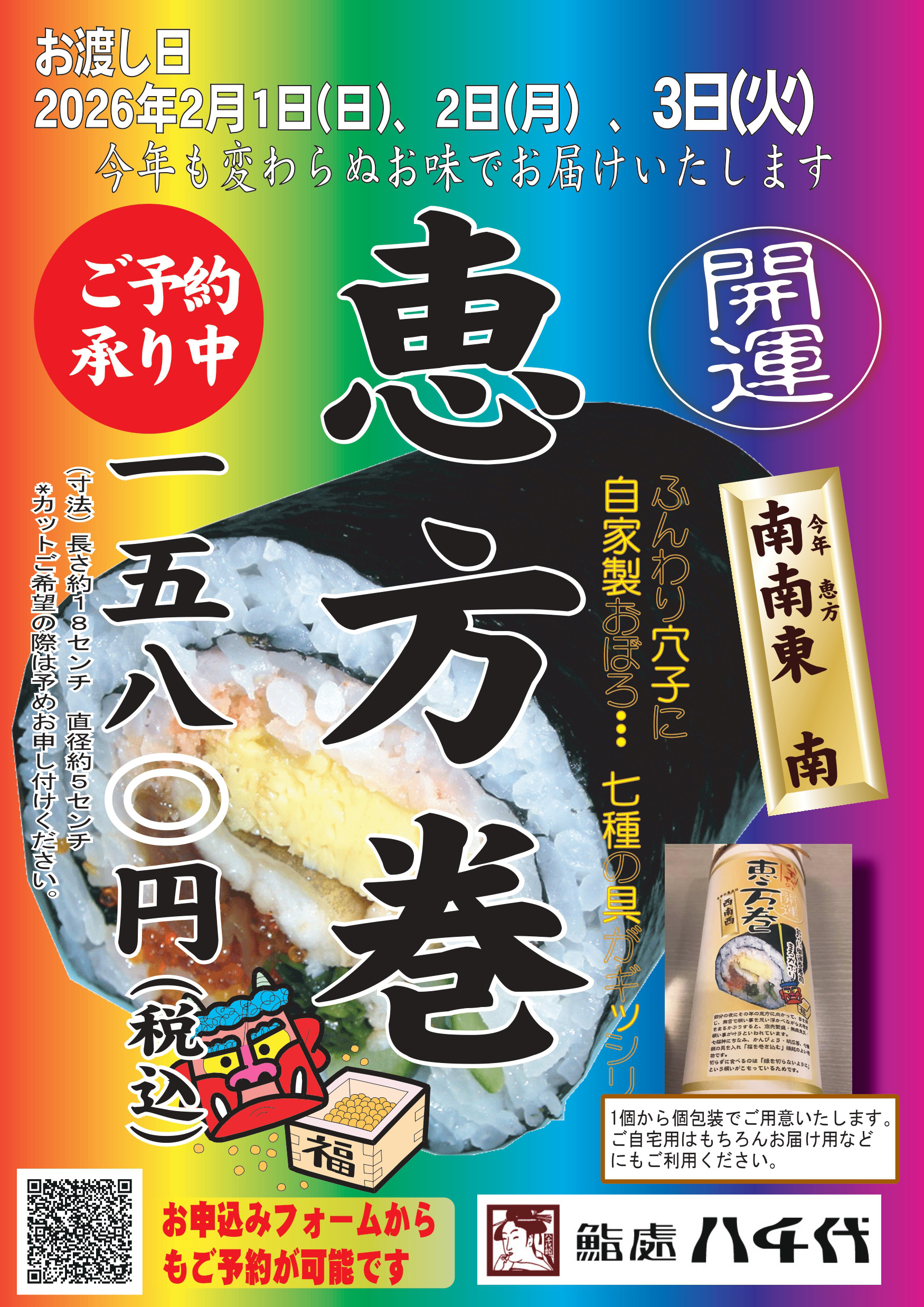 ご予約承り中!鮨處八千代の恵方巻