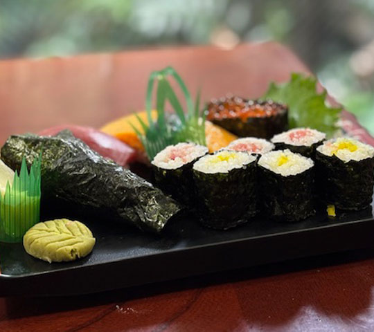 □ 自分で作ったお寿司5貫(まぐろ、サーモン、玉子、いくら軍艦、カッパ手巻)